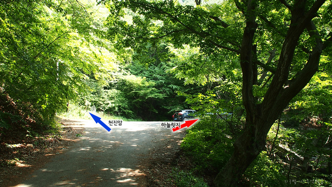 천진암 아래 주차장이 나오고 이곳에서 릿지 산행을 하려면 우측으로 나 있는 등산로를 따라가면 됩니다.