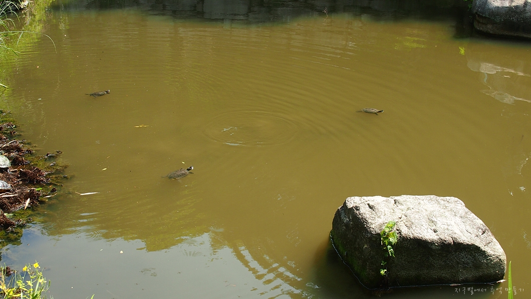 절집 구경하러 올라가는데 연못에 자라 십여 마리가 동동 떠 있다가 인기척에 모두 잠수를 해 버리네요.