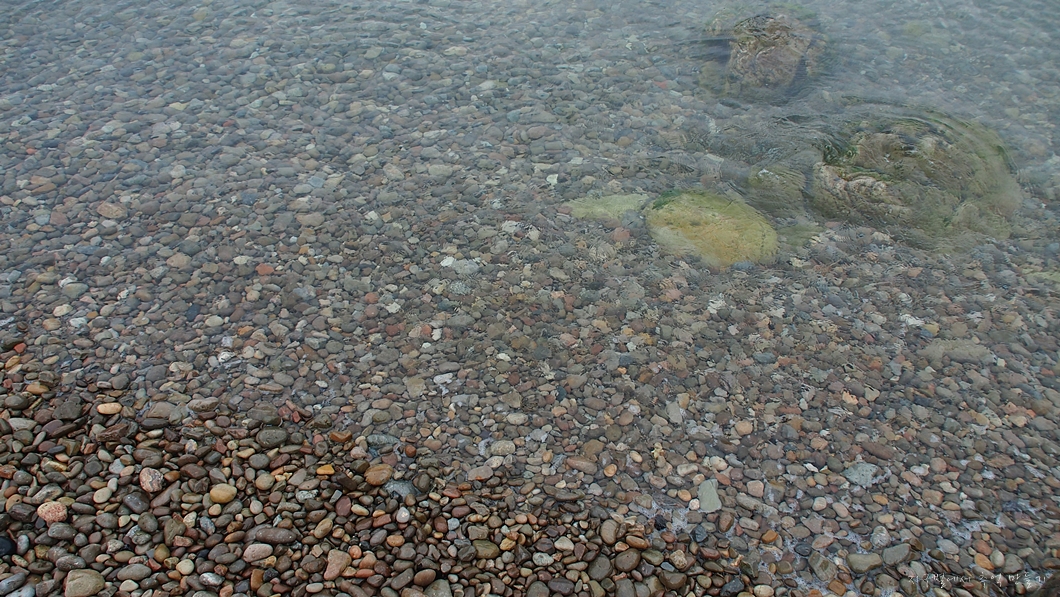 몽돌 해변인데 물이 아주 깨끗합니다.