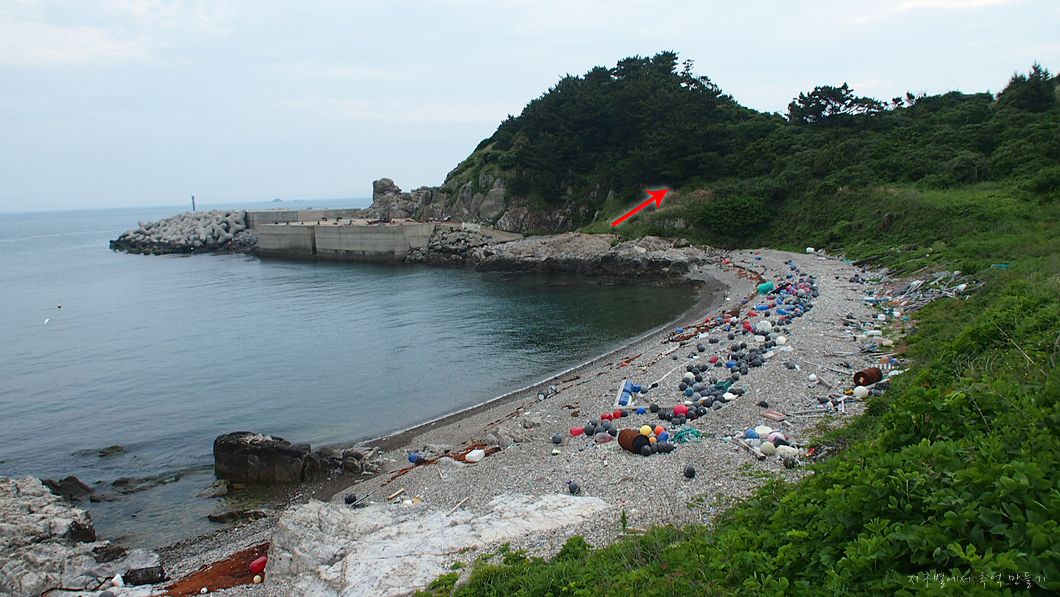 이곳도 몽돌 해변인데 바다 쓰레기가 많이 밀려와 조금 지저분합니다.