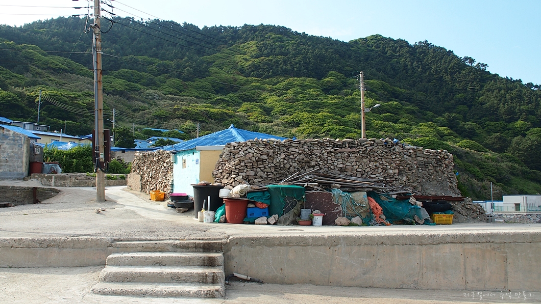 아침에는 이 앞에서 바다에서 채취해 온 수산물을 마을 여자분들이 모두 나와서 손질하고 있네요.