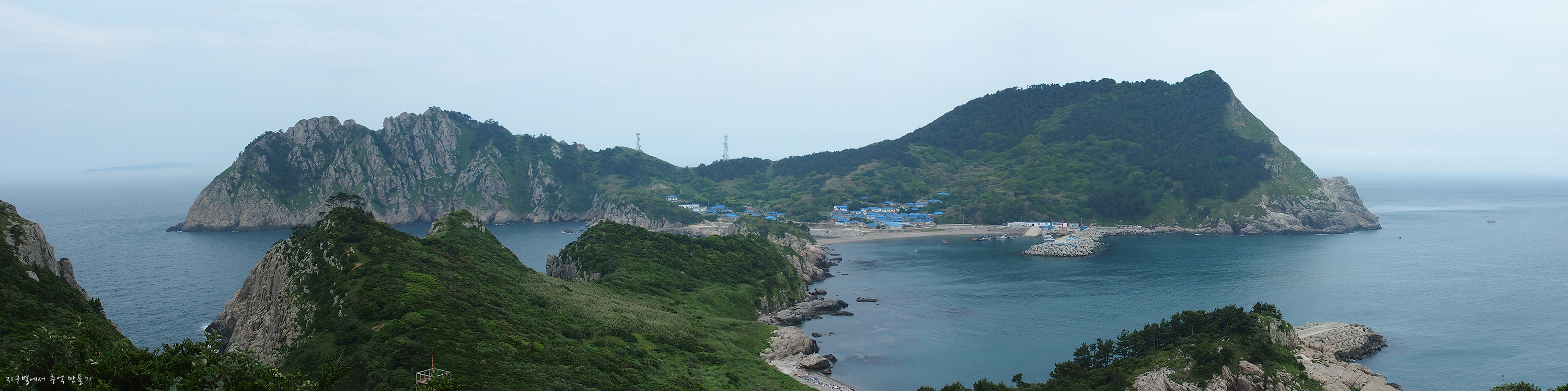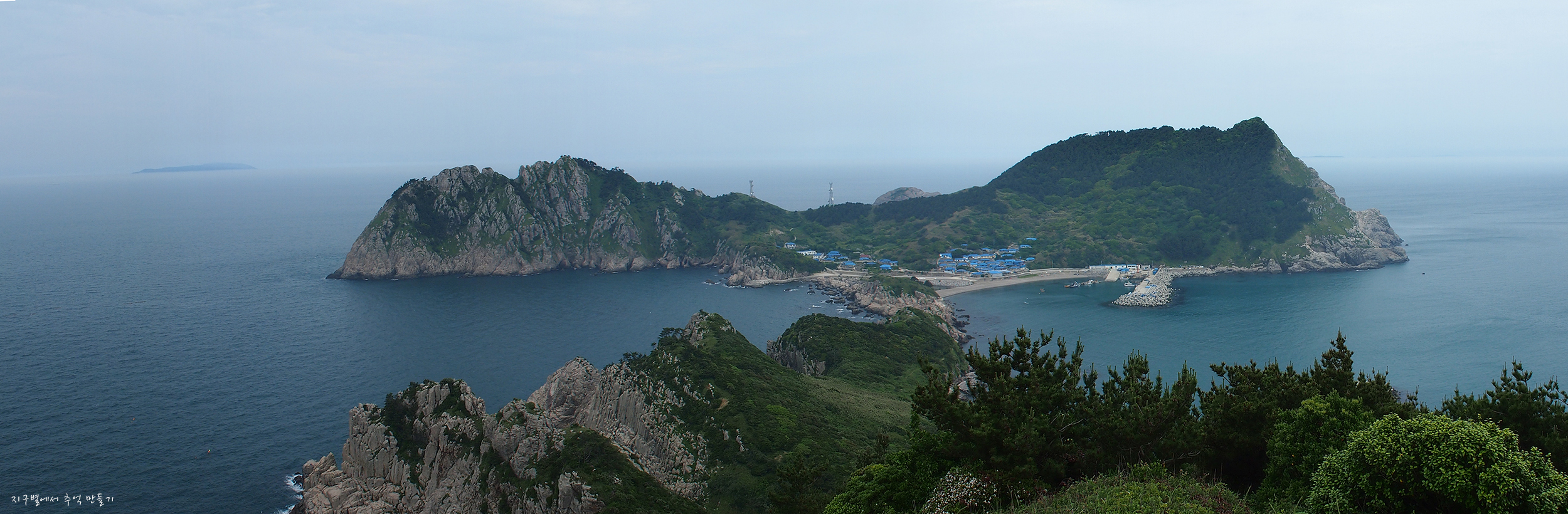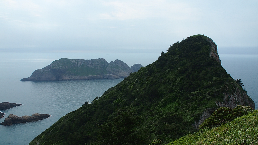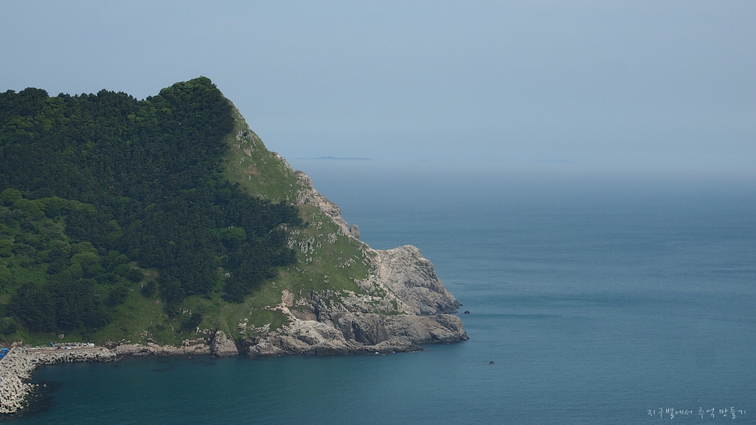 바위섬 끝으로 희미하게 점점이 보이는 섬이 태도(하태도,중태도,상태도)입니다.