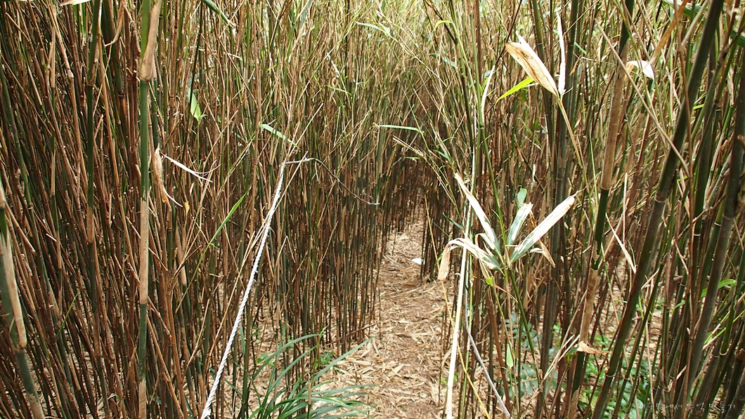 산죽터널을 지나 내려오고..