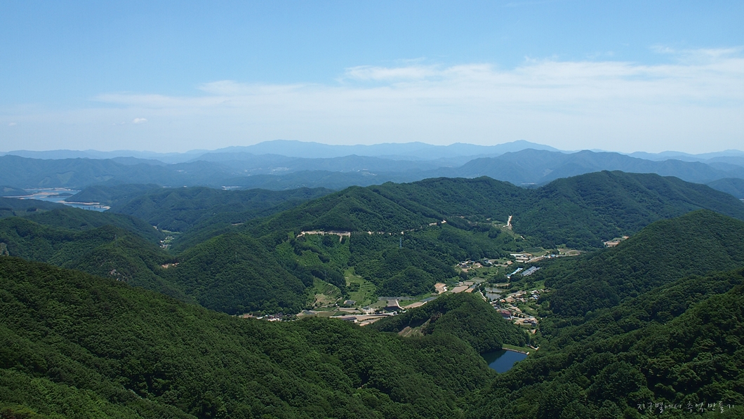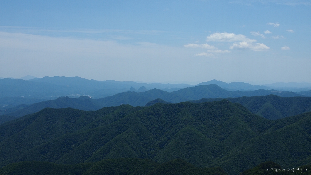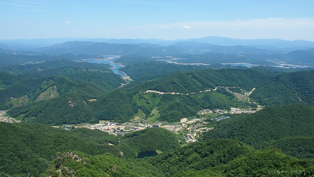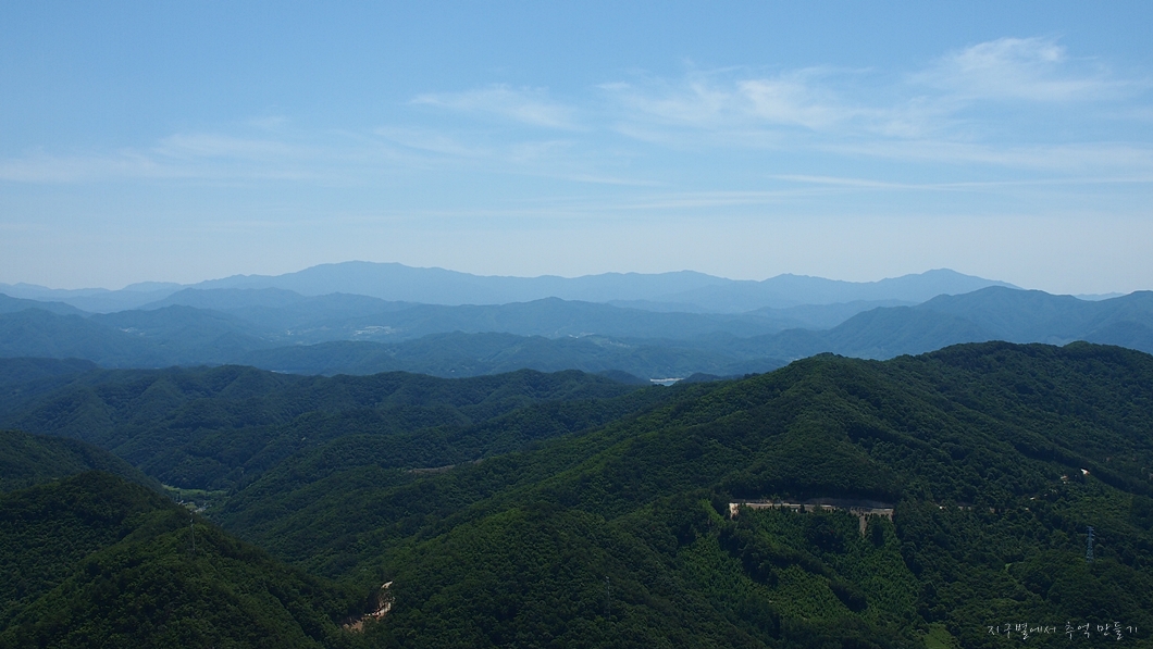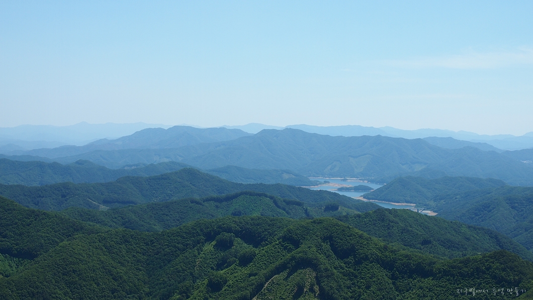 맨 뒤편 능선으로 민주지산 삼도봉 능선과 덕유산 능선이 이어져 보이네요.