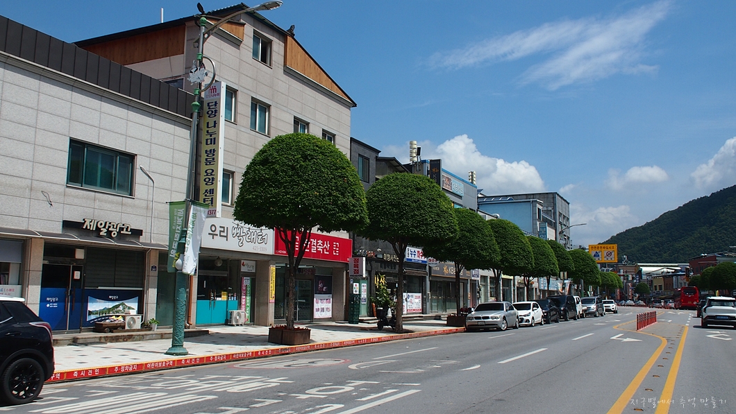 신단양 읍내를 지나는 경우 특이하게 생긴 가로수가 눈에 들어옵니다.