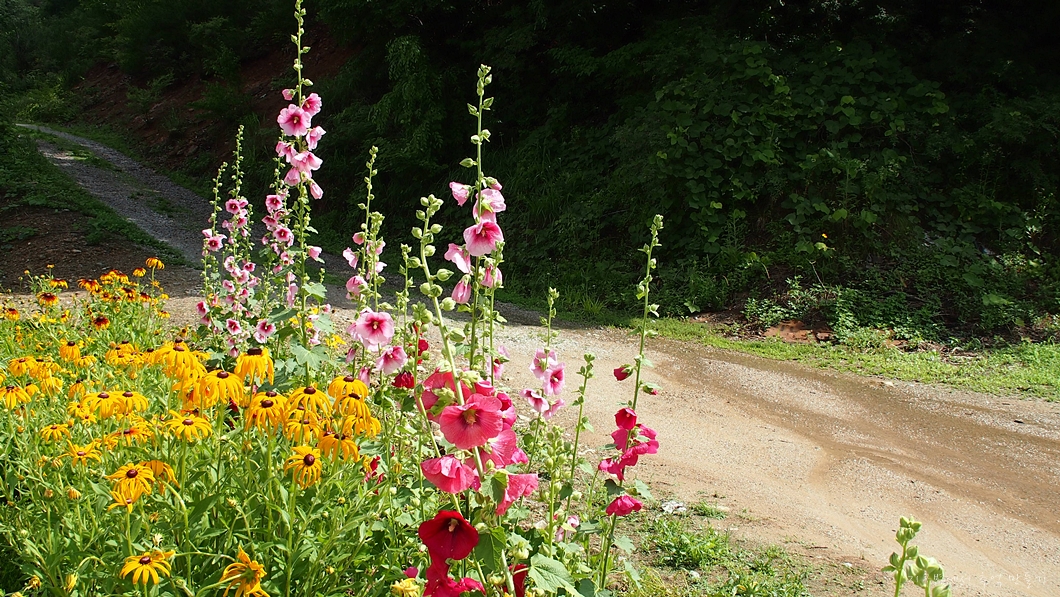 고금당으로 올라가는 길목에는 접시꽃이 가득 피어 있네요.