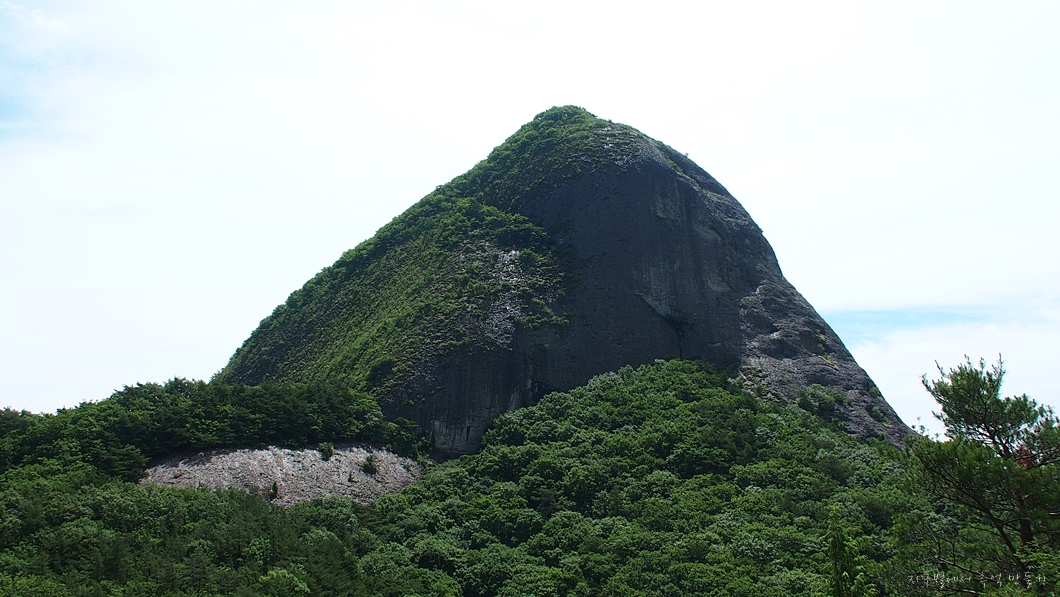위쪽 가운데 볼쏙 솟은 산은 내동산.