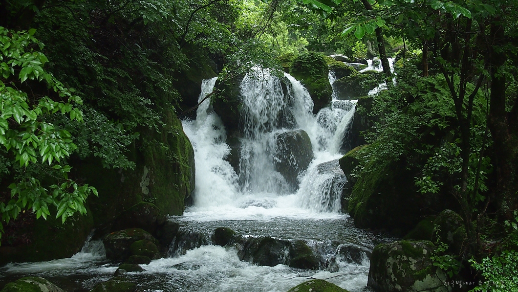 마이산 주변 산들은 모두 통바위로 되어있어 계곡에 물이 흐르는 경우가 거의 없는데 오늘은 우렁찬 물소리와 함께 폭포가 쏟아져 흘러내립니다.