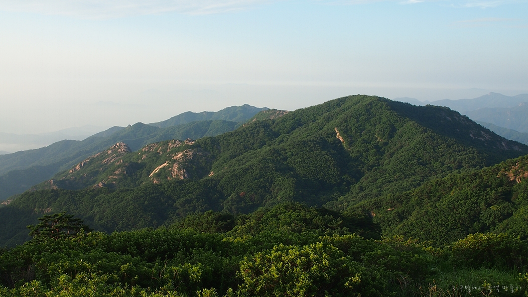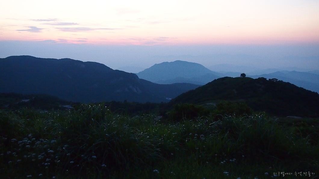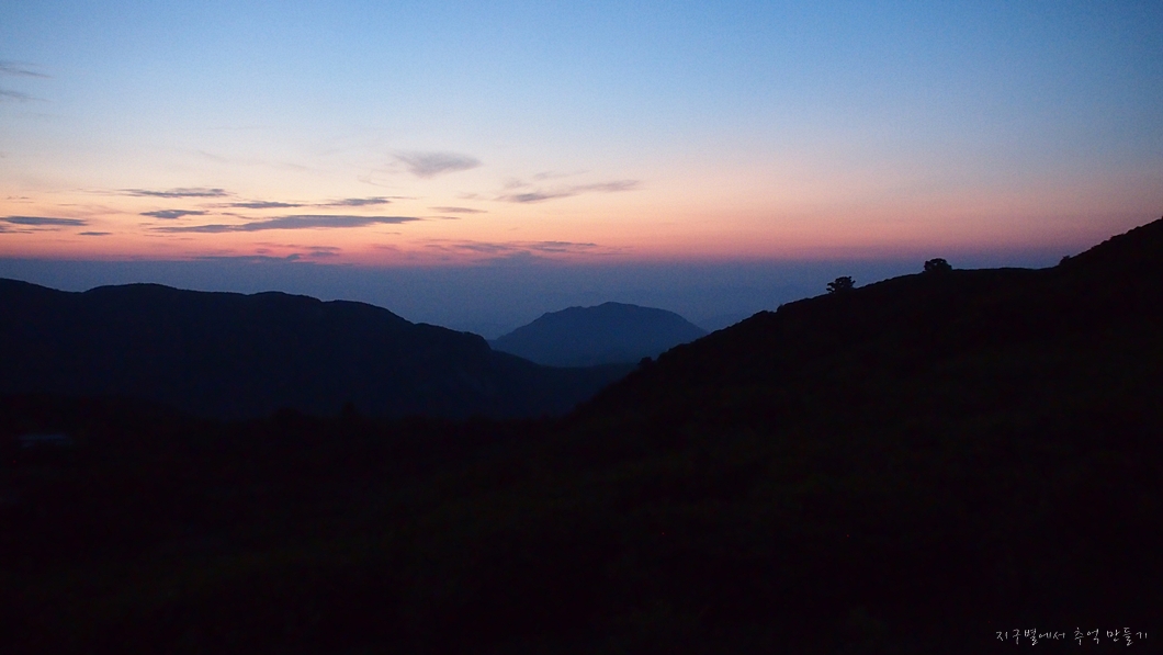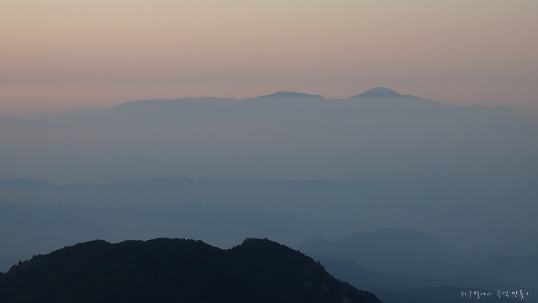 정상 능선 위 하늘 풍경이 파스텔 톤으로 참 예쁘게 보였는데 사진으로는 탁해 보입니다.