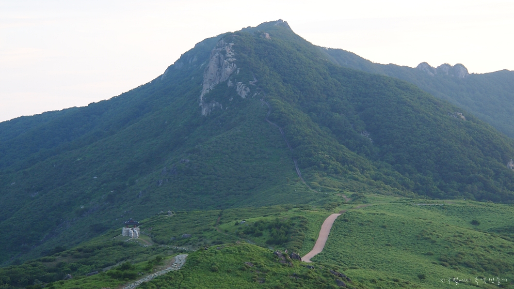 웅석봉 좌측은 달뜨기 능선, 우측은 밤머리재 능선.