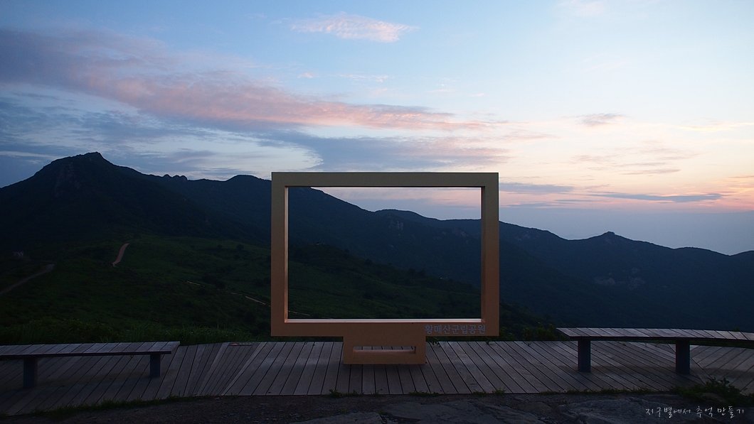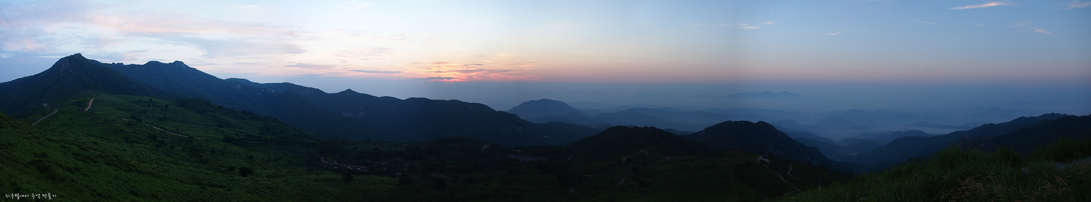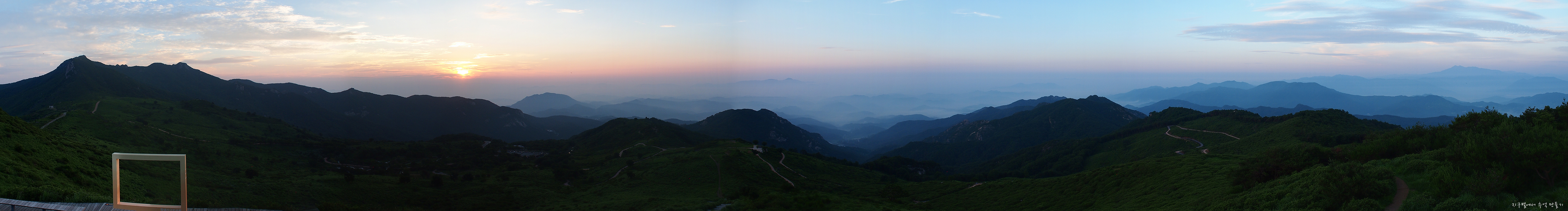 와이드 하게 조망되는 황매산 일출 파노라마 풍경.
