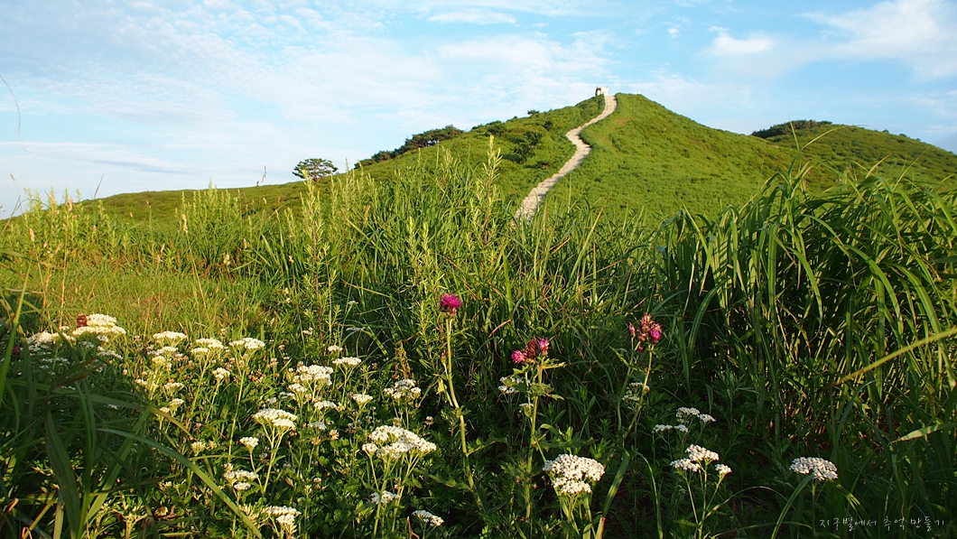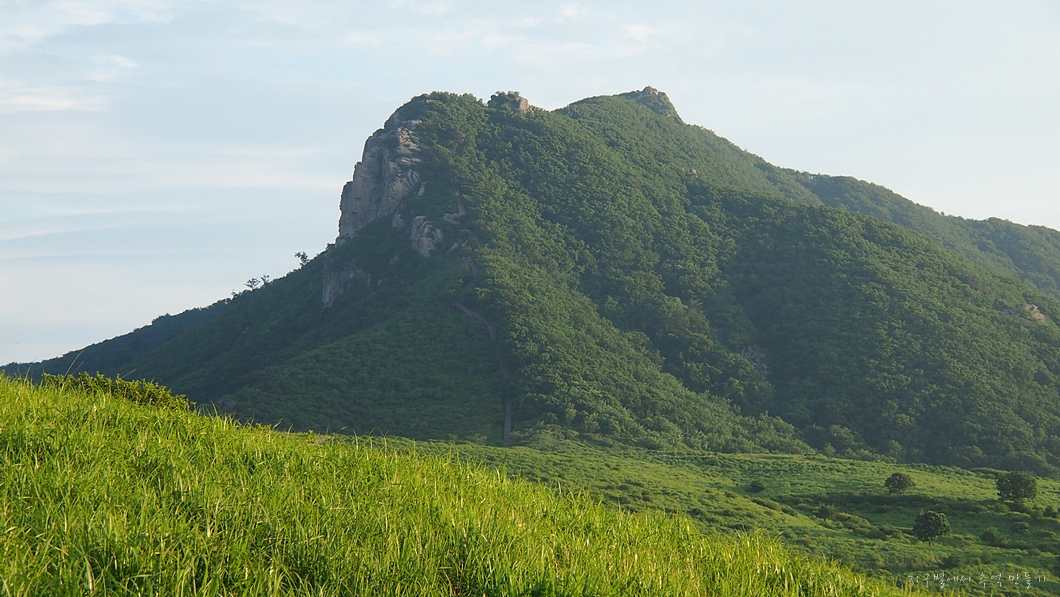 정상 쪽 능선으로 이어지는 억새밭도 햇살이 들어와서 초록의 풍경이 너무 예쁘게 보이네요.