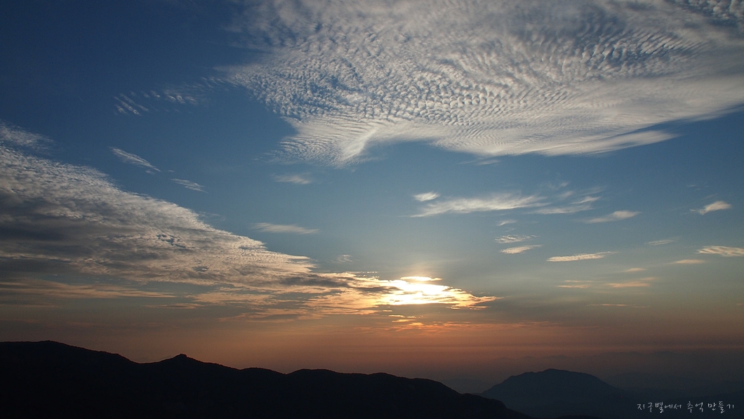 아침해가 반대편에 있는 지리산을 비추기 시작합니다.