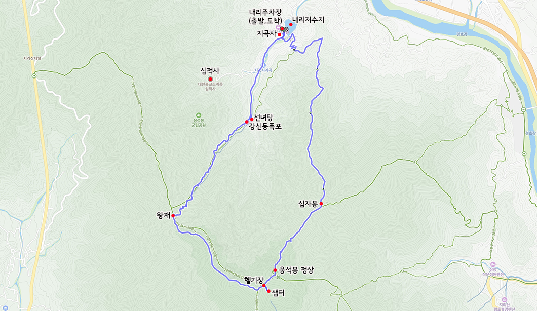 산행 코스 : 내리마을주차장 - 십자봉 - 정상 - 왕재 - 선녀탕 - 주차장(원점회귀)