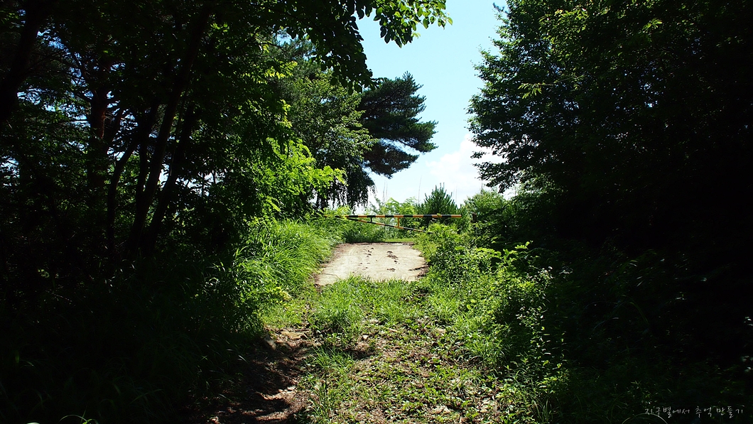 다시 임도를 만나고 그 끝의 차단기에서 둘레길과 헤어져 우측 산길로 오릅니다.