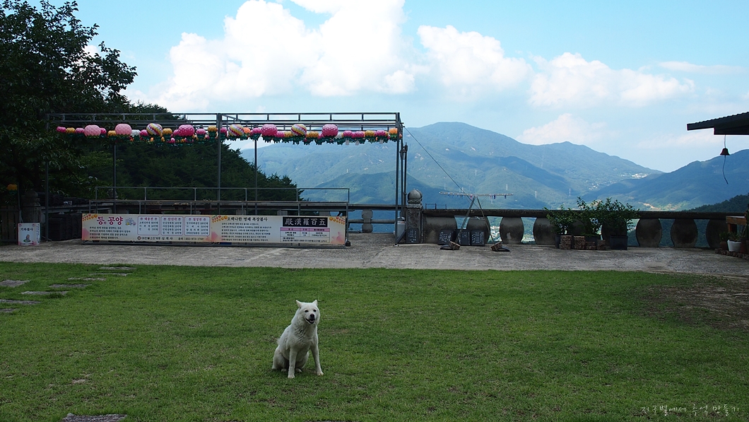 절집은 적막한데 들어올 때부터 반겨주던 진도보살이 마당 가운데 쉬고 있네요.