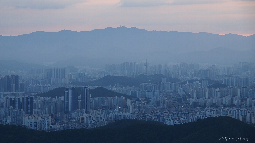 보통 일출이 되면 시가지가 밝게 보여야 하는데 대구 시가지는 일출이 되면 뿌옇게 변한답니다.