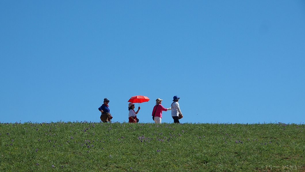 초원에 가득 피어있는 꽃들이 같이 보이게 찍으려고 했는데 사람만 보입니다.