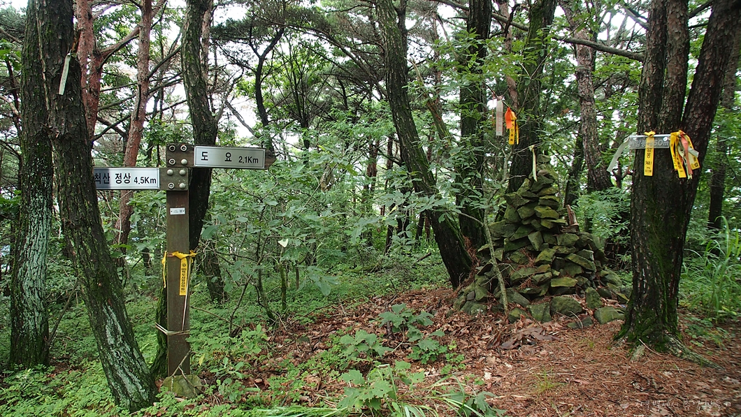 도요마을에서 출발하여 길게 이어진 능선길을 걷는 코스인데 봉우리를 몇 개 넘나들어 오르내림도 있습니다.