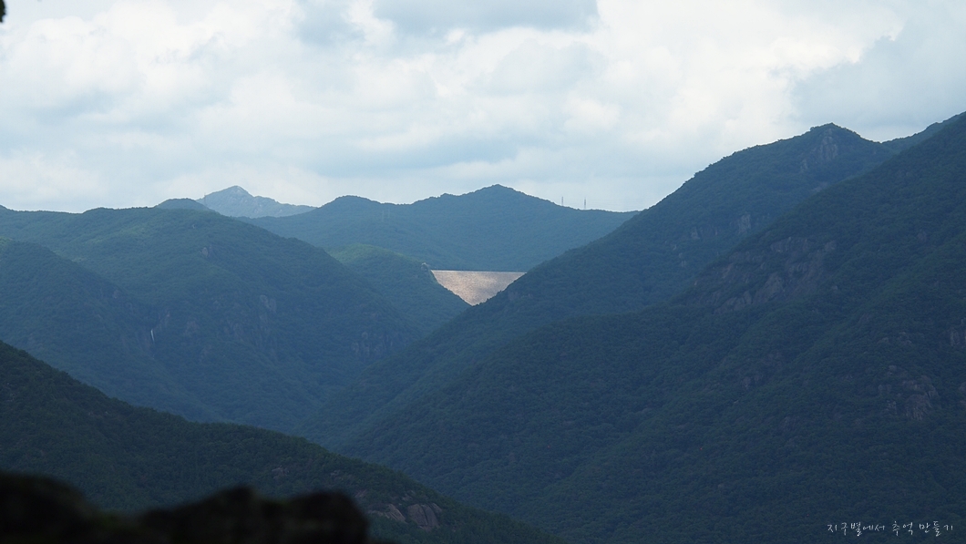 우측 뒤로 멀리 만어산이 보이네요.(산행기 보기)