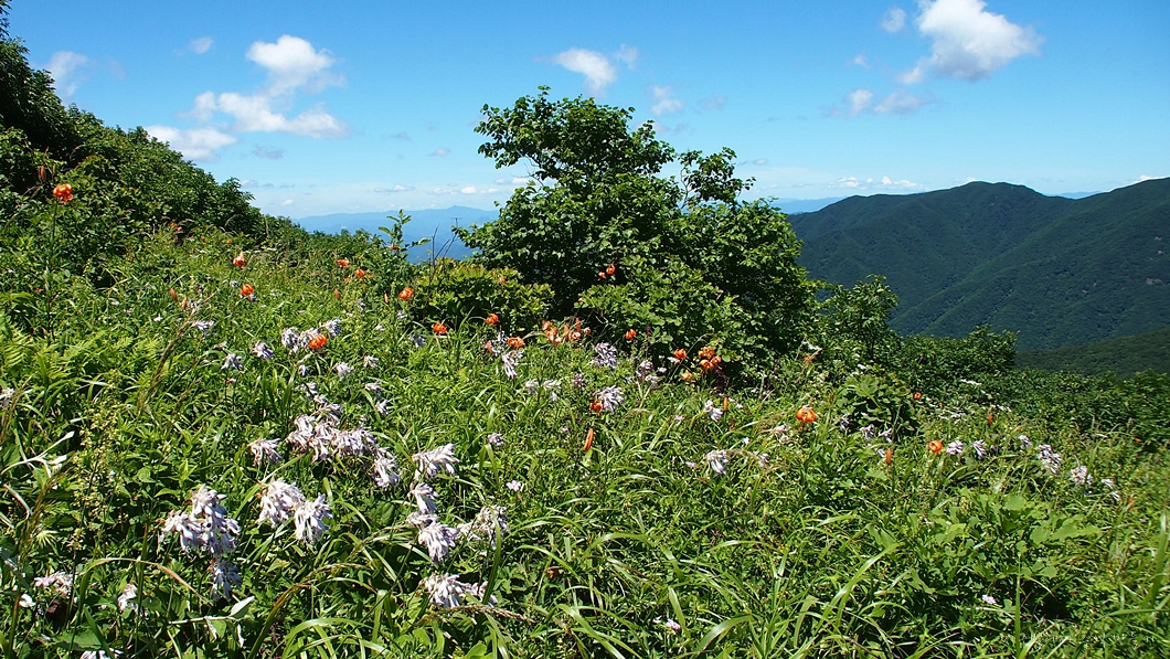 능선에는 다양한 야생화들이 많이 피어 있는데 가장 많이 보이는 건 나리꽃과 비비추.