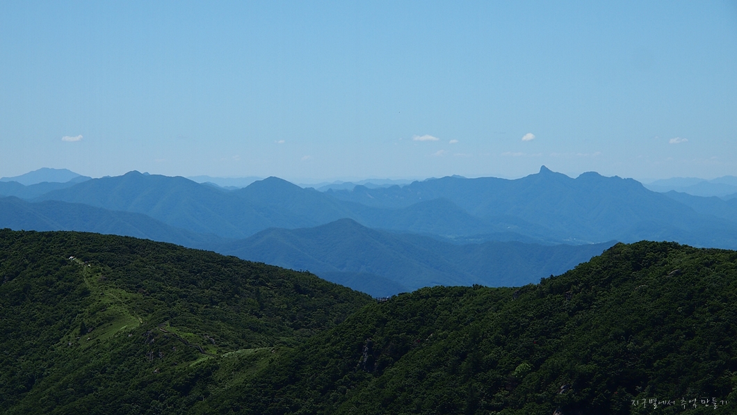 좌측 국망봉과 함께 조망되는 남쪽 방향 파노라마 풍경입니다.