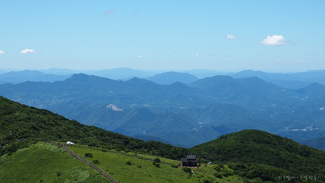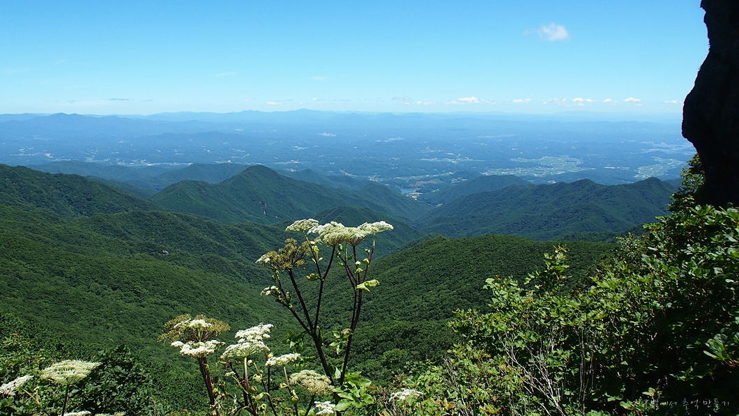 보이는 산들은 모두 강원도의 산들인데 가운데 솟은 산이 계방산으로 짐작이 되네요.