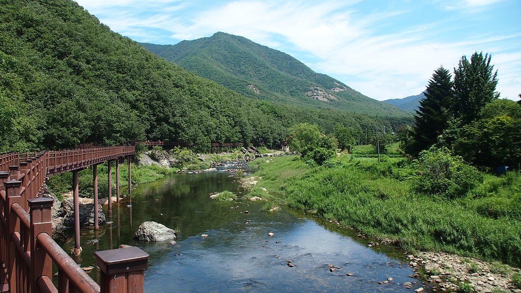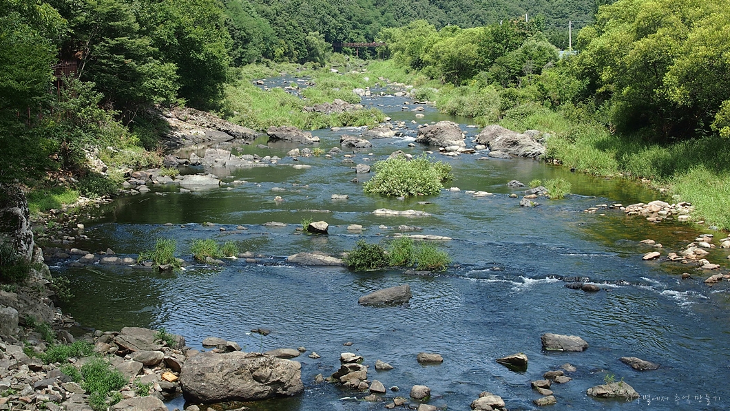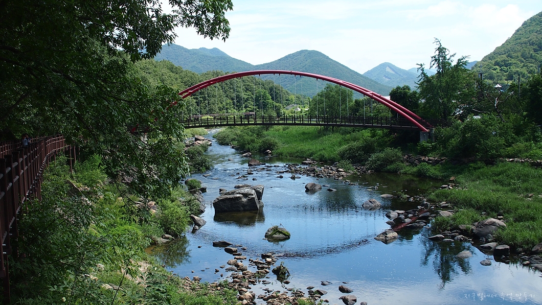 바로 옆의 구수천(석천)을 따라 걷습니다.
