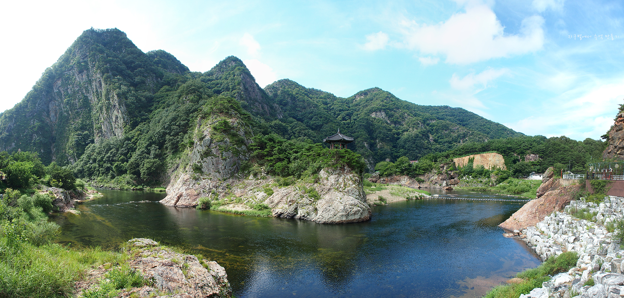 초강천 위 바위에 자리한 월류정