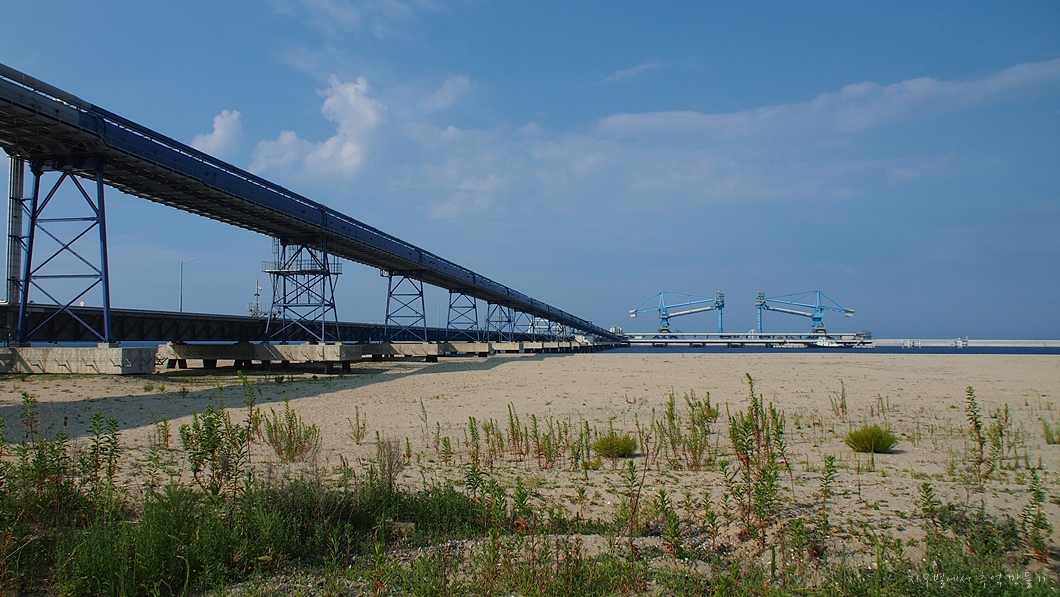 안인항 옆 염전해변 바닷가로 난 이 시설물은 화력발전소에 석탄을 실어 나르는 컨베이어 벨트라고 합니다.