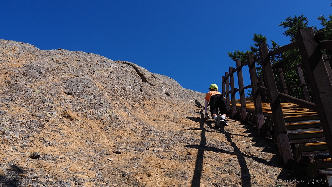 좌측의 거의 클라이밍 구간으로 오르려고 하는 걸 말려서 계단 옆으로 올라가 보라고..