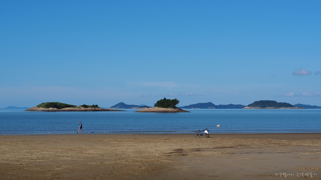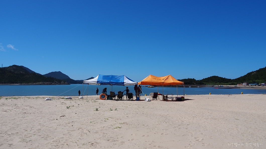 도초도에서는 가장 규모가 큰 해수욕장인데 딱 한 팀이 와서 해수욕장을 전세내고 있습니다.