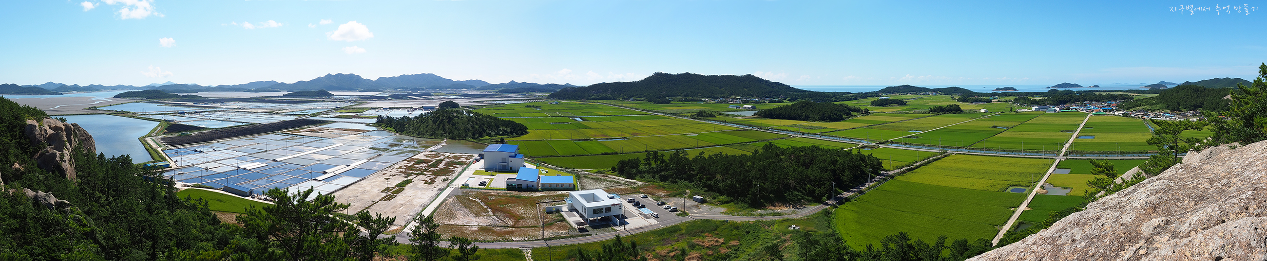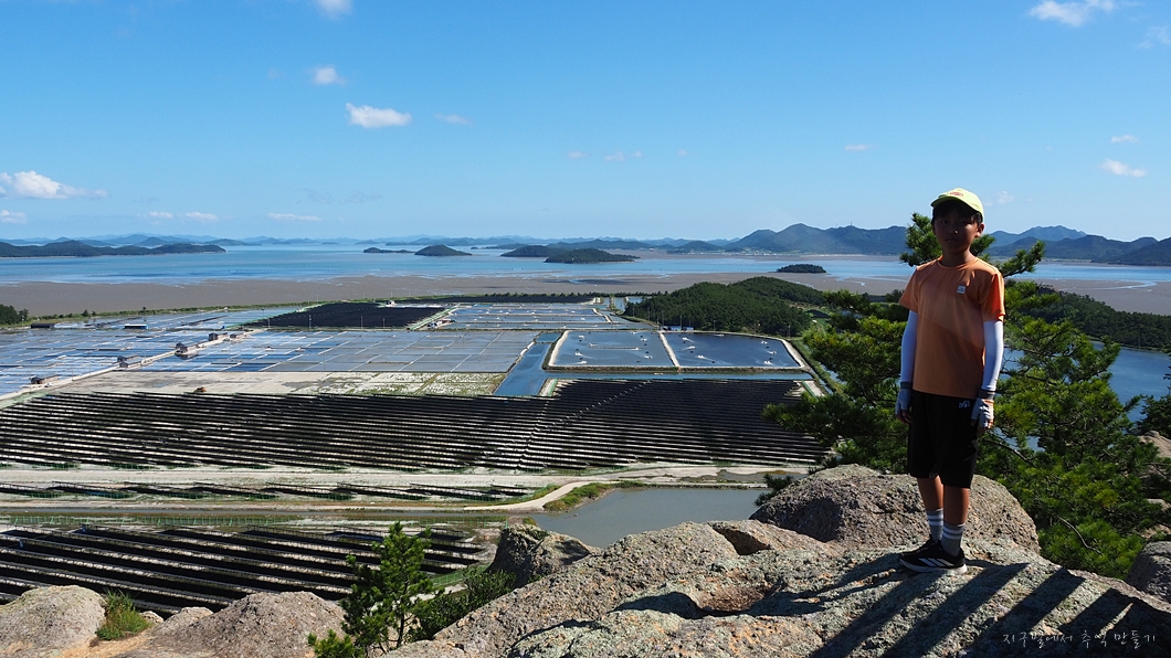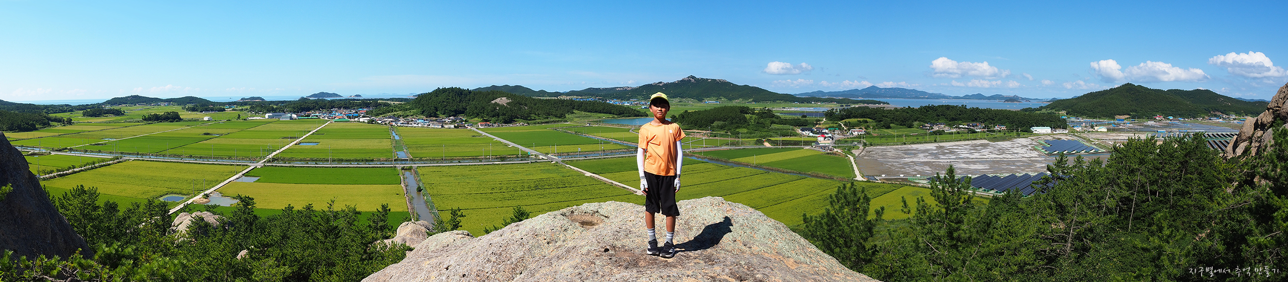 아이와 함께하는 비금도 떡메산의 파노라마 조망.