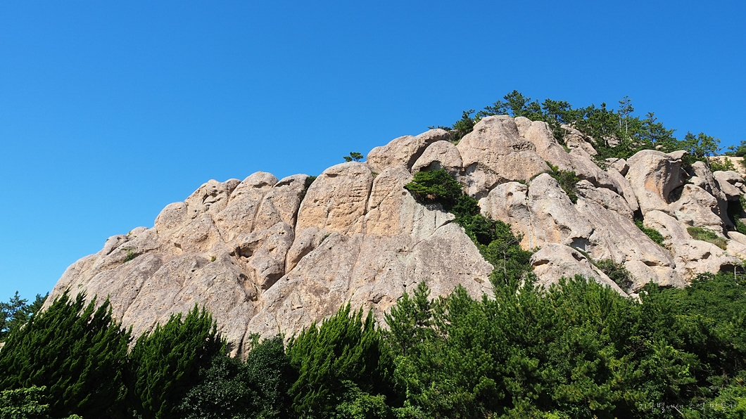 하산하면서 올려다본 바위산이 미국 전직 대통령들의 얼굴을 새긴 러시모아산과 비슷하다는 느낌이..