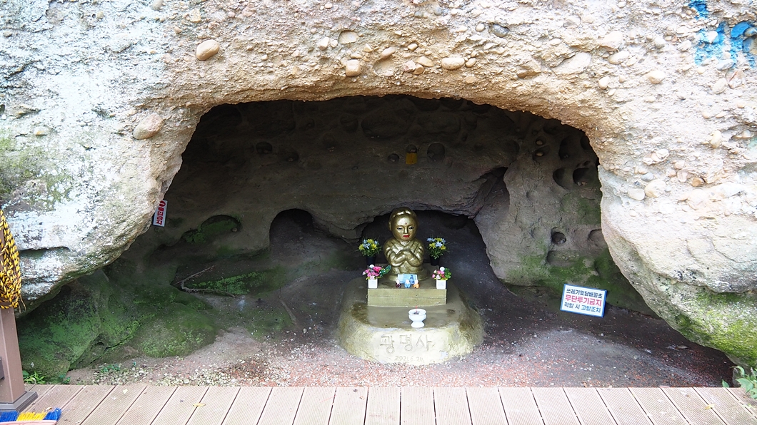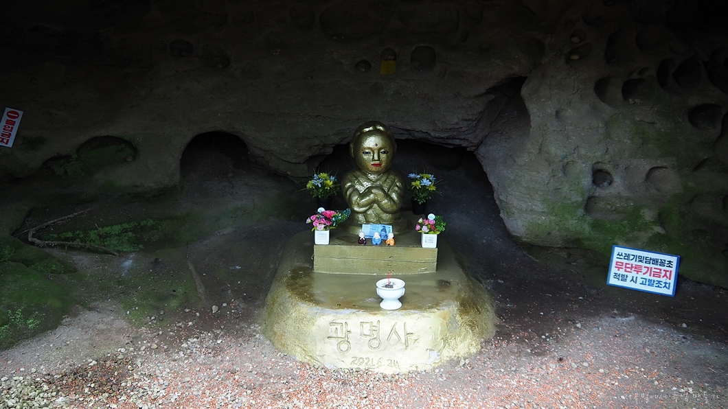 특이하게 파인 자연 동굴 안에 마고할멈 상을 만들어 두었는데 원래는 자연형상의 마고할멈이 있었다고 합니다.