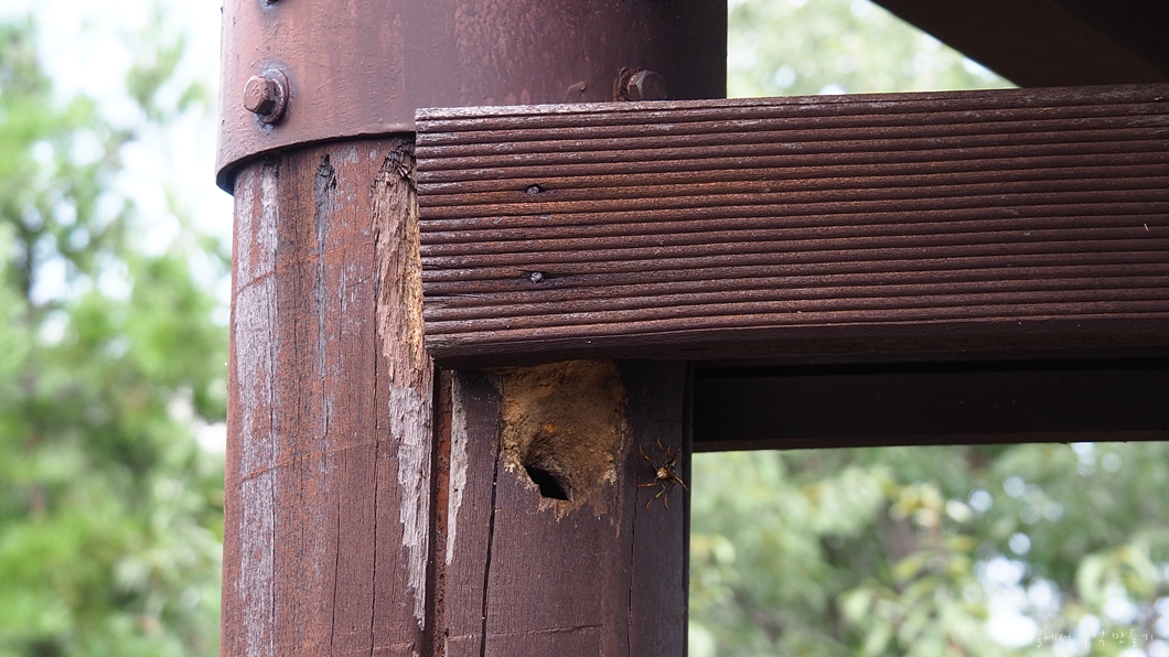 기둥 하나는 딱따구리가 팠는지 큰 구멍이 나 있네요.