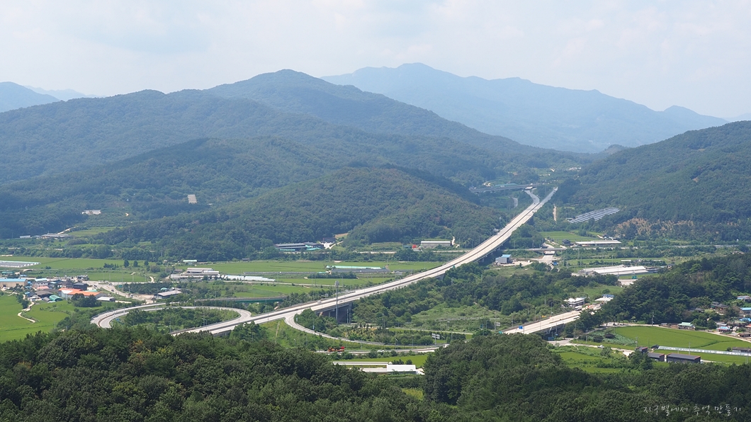 서산영덕 고속도로가 달리고 있고 뒤로 갑장산이 조망됩니다.