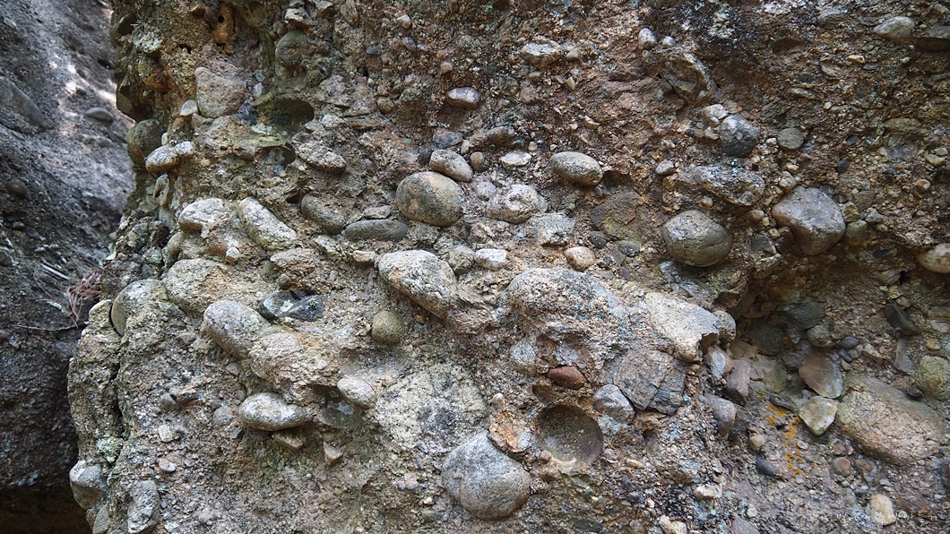 이렇게 자갈이나 작은 돌들이 흙과 버무려져 만들어진 바위를 역암이라고 하지요.