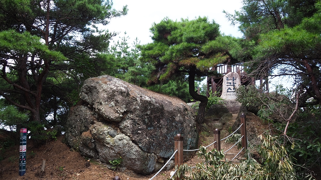 소라(螺) 뿔(角) 모양으로 생겼다고 하여 나각산(螺角山)인데 해발 240m입니다.