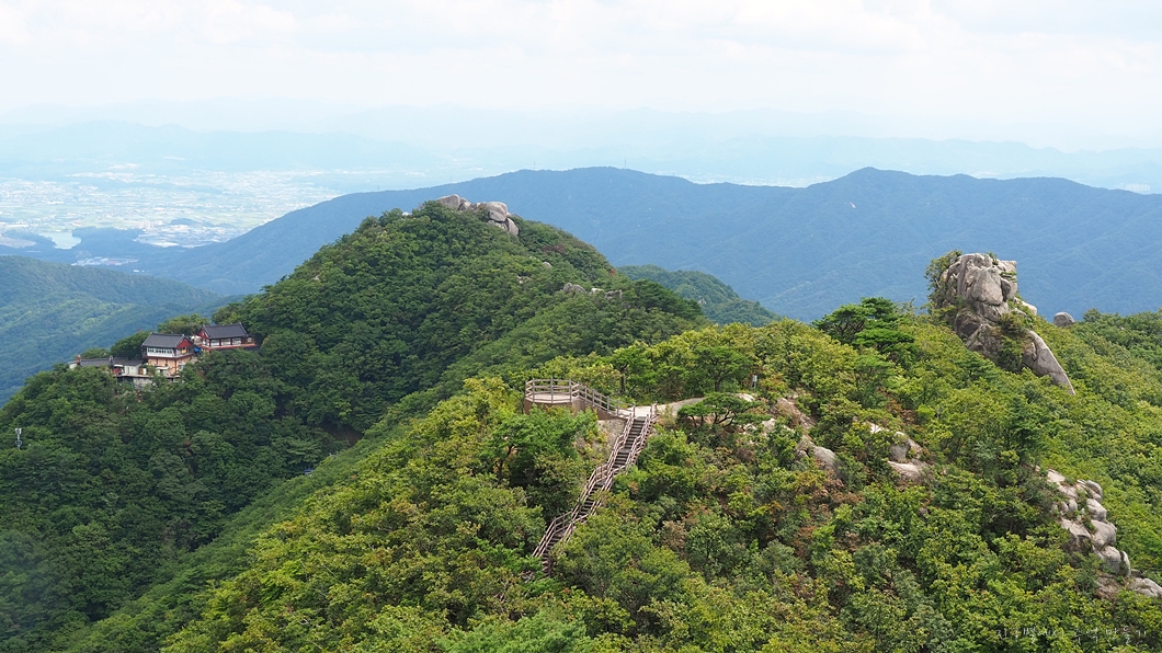 가운데 솟은 봉우리가 갓바위 뒤태이구요.