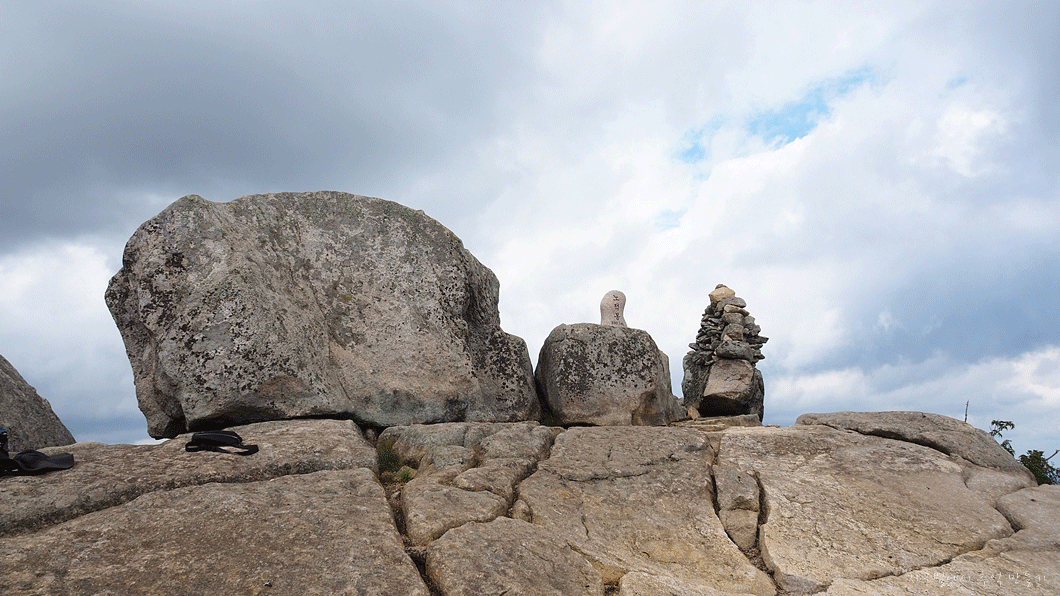 어떤 미친넘이 이곳 올라서 정상석을 동강내어 날려 버렸는데 찾지를 못했다네요.