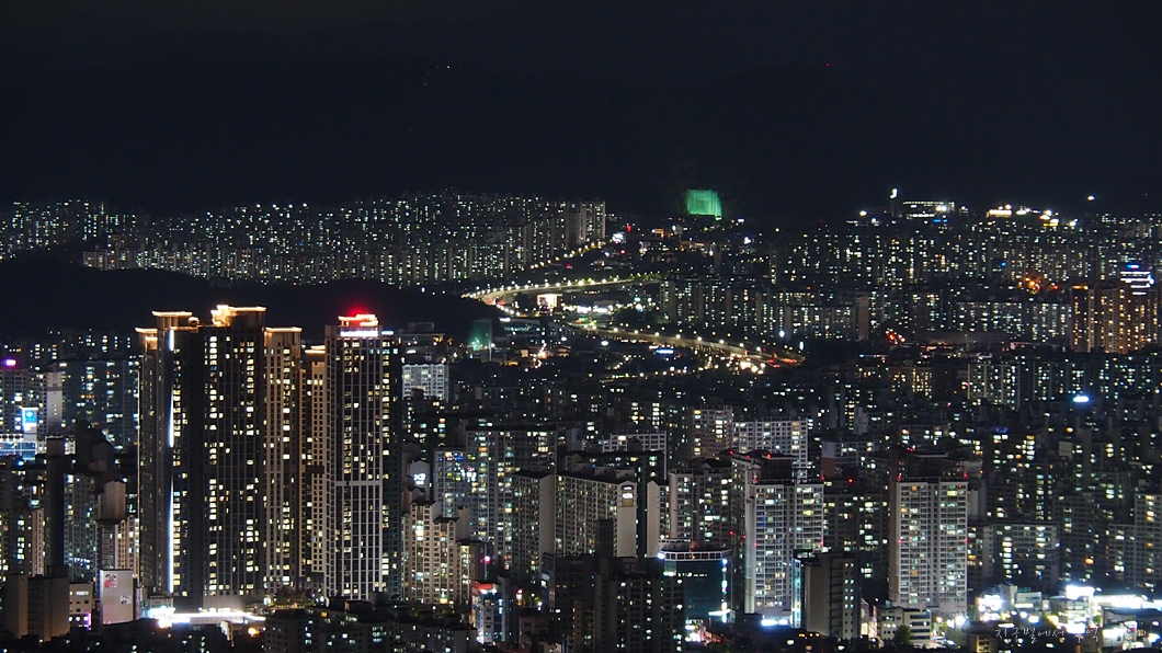 내려다보이는 도심의 야경을 연결하여 만든 파노라마.