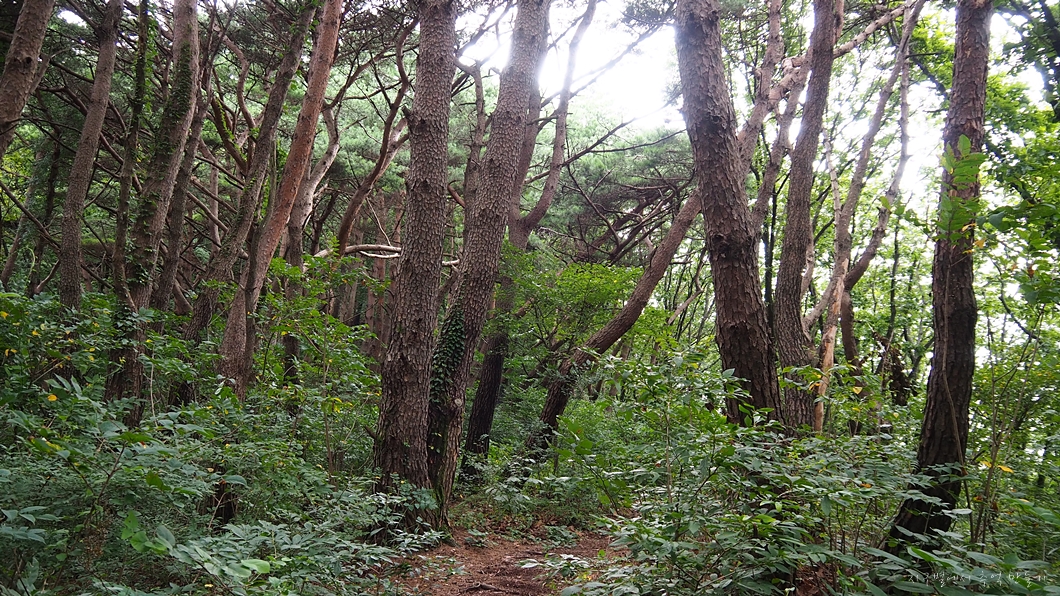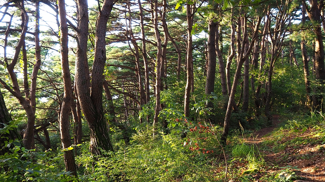 소나무 숲이 아주 우거져 있어 숨을 크게 들이마십니다.