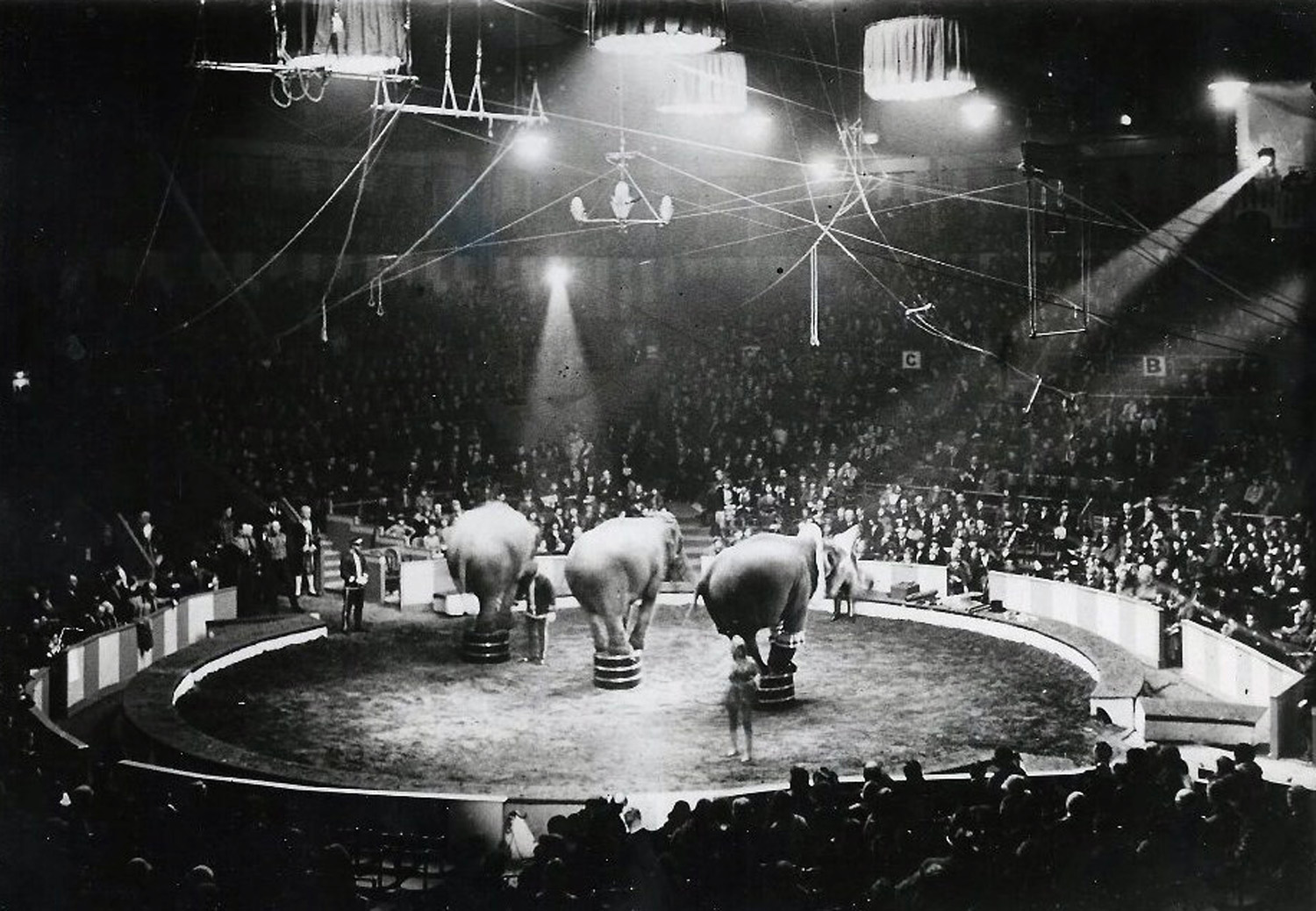 이 사진은 서커스가 가장 호황을 누릴 때의 코끼리 쇼 모습