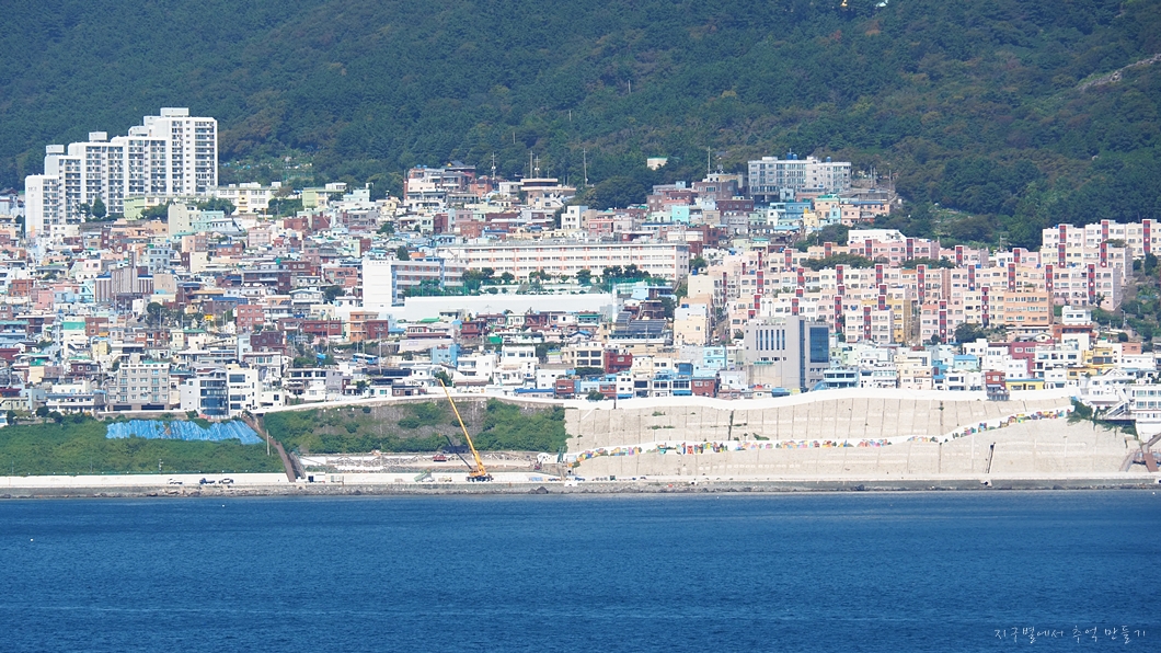 멀리 영도 끝자락 태종대 쪽이 바라 보입니다.