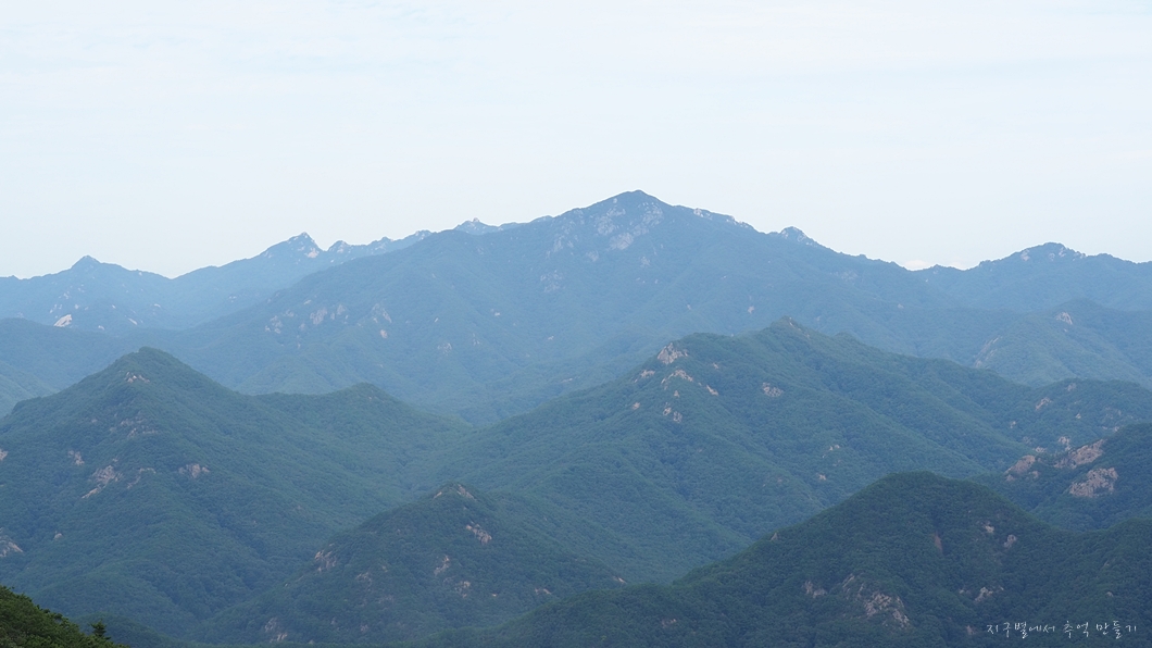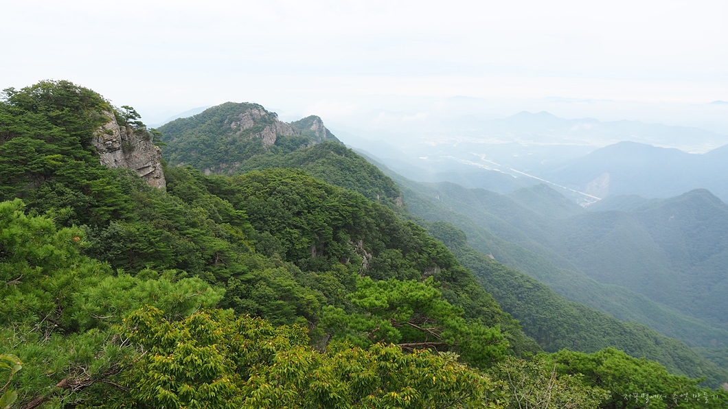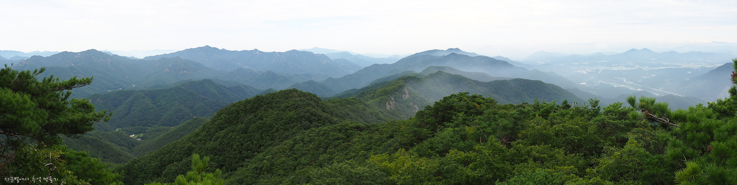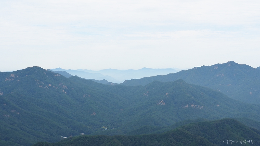이곳에서는 속리산 주 능선을 세로로 보기 때문에 그리 길게 보이지 않네요.