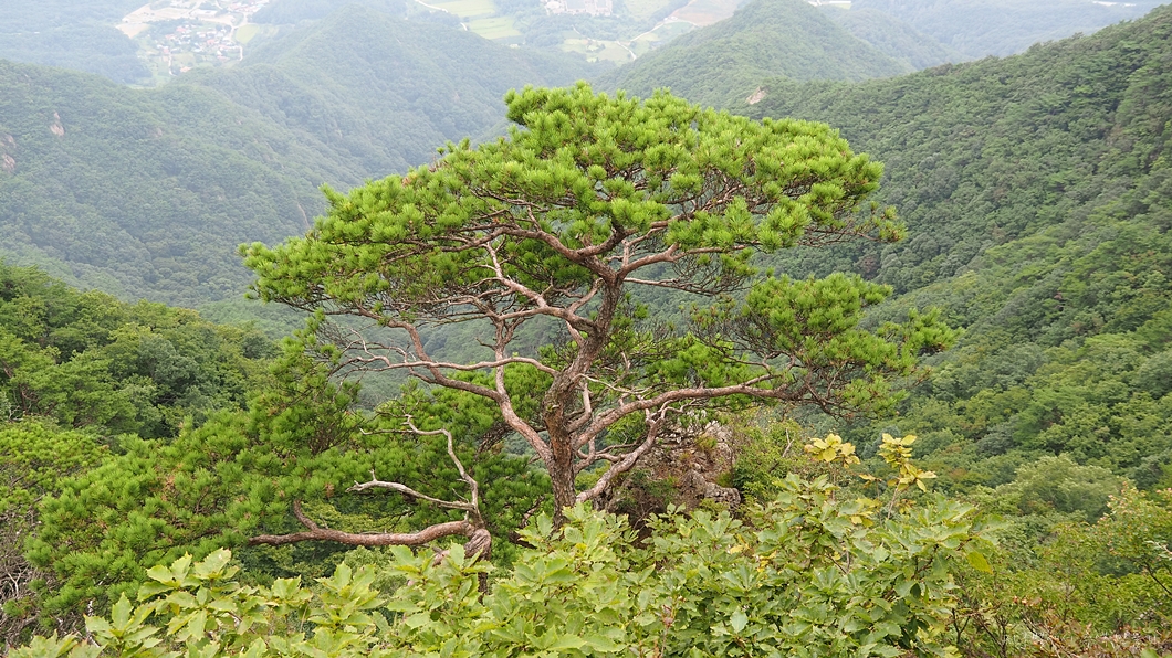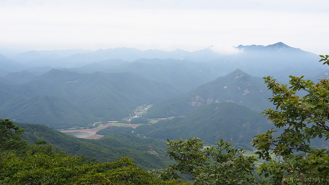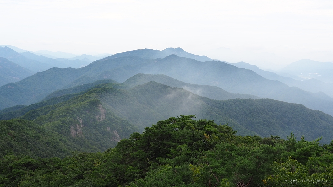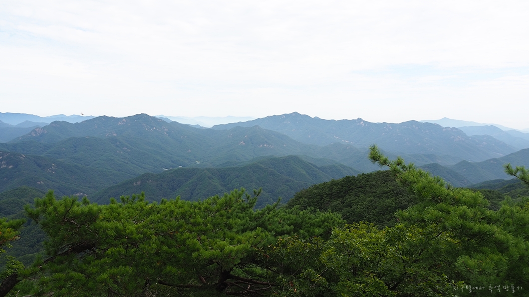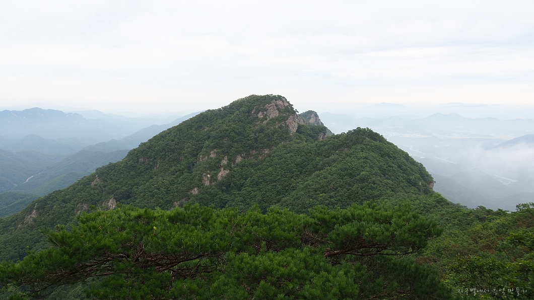 이곳에서는 속리산 주 능선을 세로로 보기 때문에 그리 길게 보이지 않네요.