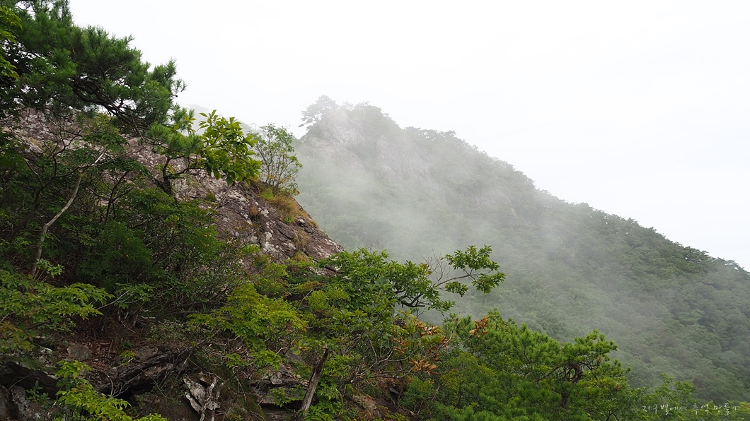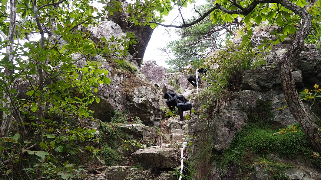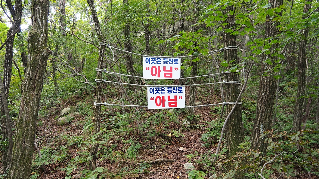 물론 일부러 곡예능선을 타고 넘나들면 되지만 구간구간 겁박 수준의 안내판을 세워두어 그 핑계로 아찔한 능선 구간들은 비켜 걸었답니다.