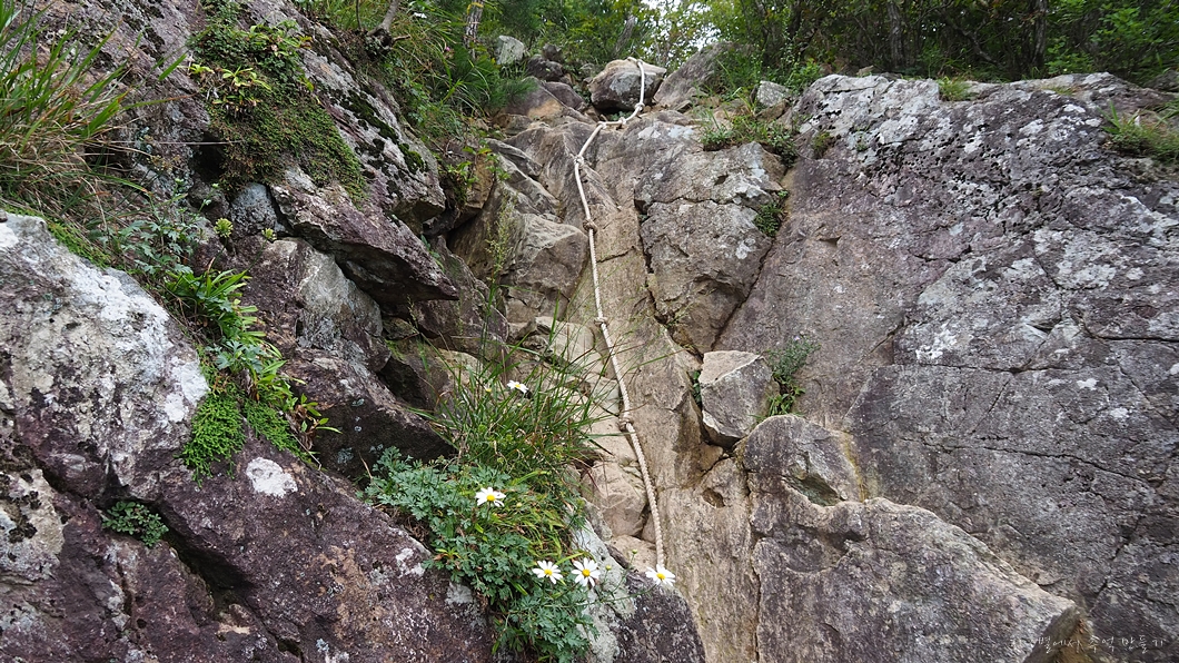 밧줄을 잡고 오르내려야 하는 곳이 몇 곳 됩니다.