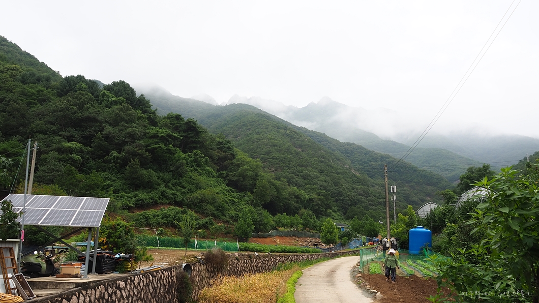 적암리 마을 주차장에 주차를 하고 동네길을 따라 올라가는데 안개로 하나도 보이지 않던 구병산 능선이 조금씩 보이기 시작하네요.